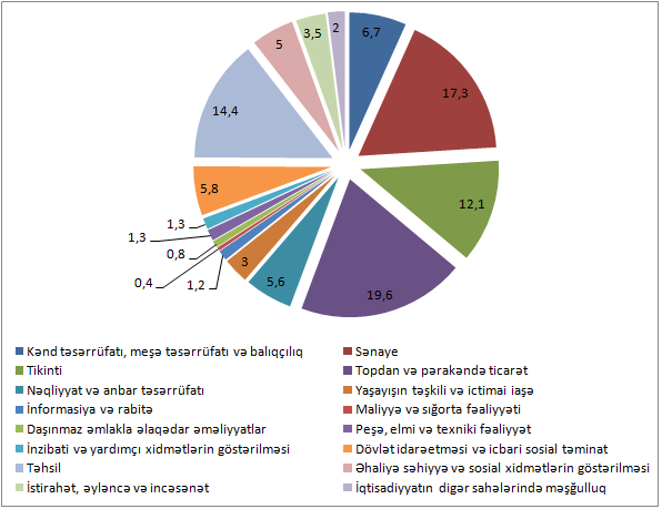 Naxçıvan Muxtar Respublikasında muzdla işləyənlərin iqtisadiyyatın sahələri üzrə bölgüsü (faiz)