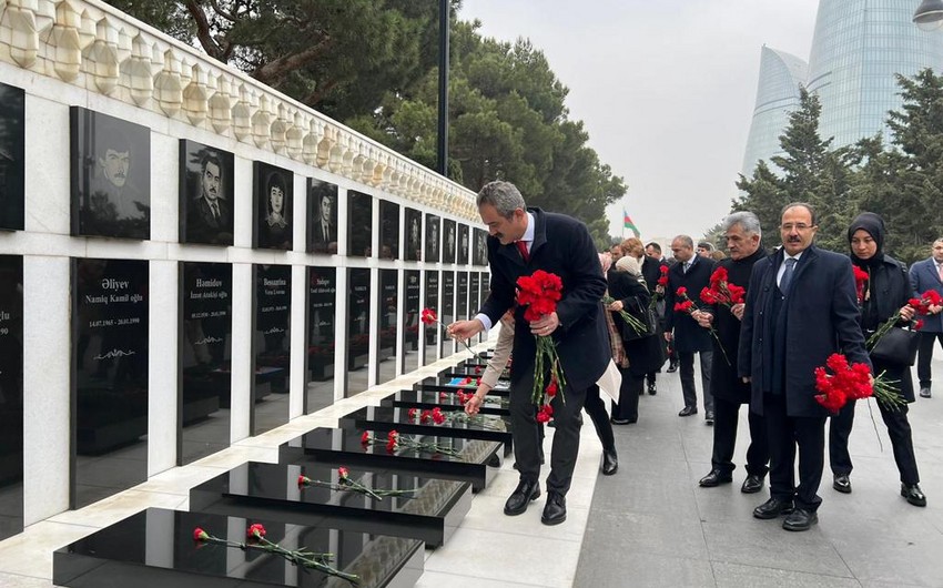 Mia.az xəbər verir ki, o və rəhbərlik etdiyi nümayəndə heyəti Fəxri xiyabanda Heydər Əliyevin xatirəsini ehtiramla yad edərək məzarı önünə əklil qoyub, daha sonra isə Şəhidlər xiyabanı və Türk şəhidliyini ziyarət ediblər.