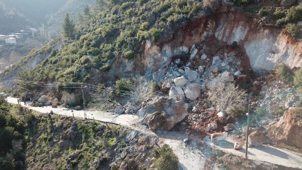Hatayın 250 evlik Bektaşlı kəndində zəlzələdən sonra dağdan qopalan iri daşlar yuvarlanaraq birmərtəbəli evləri dağıdıb.