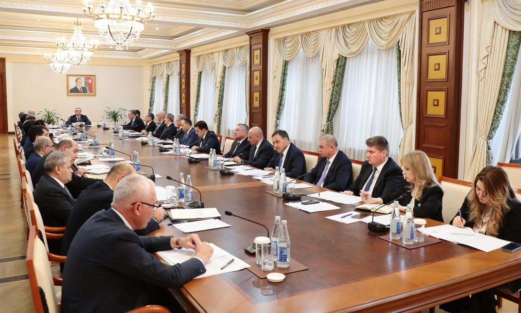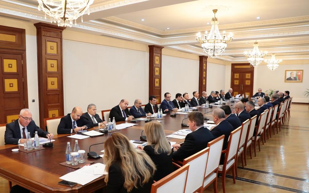 Daha sonra iclasın gündəliyinə uyğun olaraq, antiterror tədbirləri nəticəsində suverenliyin bərpa edildiyi ərazilərdə zəruri məsələlərin həlli istiqamətində görülən işlər, “Azərbaycan Respublikasının işğaldan azad edilmiş ərazilərinə Böyük Qayıdışa dair I Dövlət Proqramı” çərçivəsində ərazilərdə həyata keçirilən işlərin cari vəziyyəti, geri qayıdan əhalinin məskunlaşmasının, təhlükəsizliyinin və dayanıqlı məşğulluğunun təmin edilməsi, azad edilmiş ərazilərdə kənd təsərrüfatı təyinatlı torpaqlardan səmərəli istifadənin və rəqabətqabiliyyətli aqrar istehsalın təşkili ilə bağlı məruzələr dinlənilib.