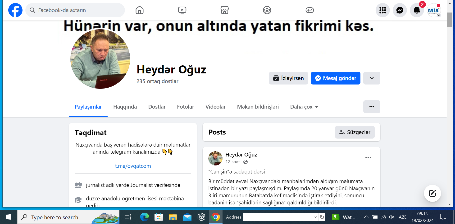 P.S. Yazı jurnalistin Feysbuk-dakı səhifəsindən götürülüb.