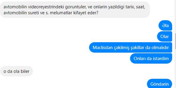 “-Avtomobilin videoreyestrindəki görüntülər və onların yazıldığı tarix, saat, avtomobilin sürəti və s. məlumatlar kifayət edər?...