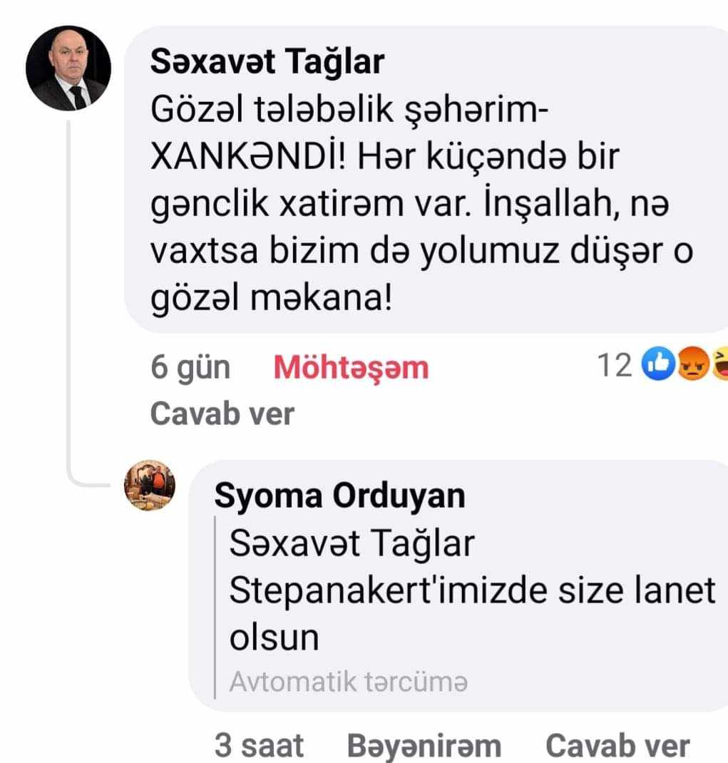 Görəsən aydın həqiqətləri qaranlıq görən bu erməni dığası niyə layiq olduqları sözü bizim qəlbi-ruhu Qarabağ sevgili ziyalımıza ünvanlayıb?!