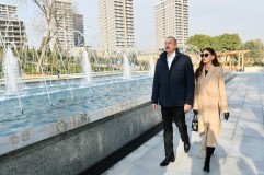 Prezident və birinci xanım Nizami Gəncəvi parkında yenidənqurmadan sonra yaradılan şəraitlə tanış olublar - FOTOLAR