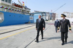 Prezident “Kəlbəcər” neftdaşıyan tankerin istismara verilməsi mərasimində - FOTOLAR