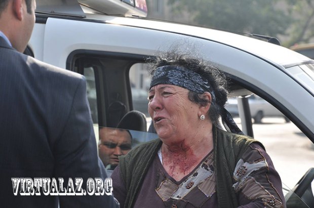 Bakıda polislər çaysatan qadını boğaza yığdı, o da boğazını stəkan qırığı ilə kəsdi - Fotolar