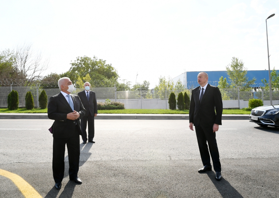 Prezident İlham Əliyev elektromobillə stansiyanın ərazisini gəzib.