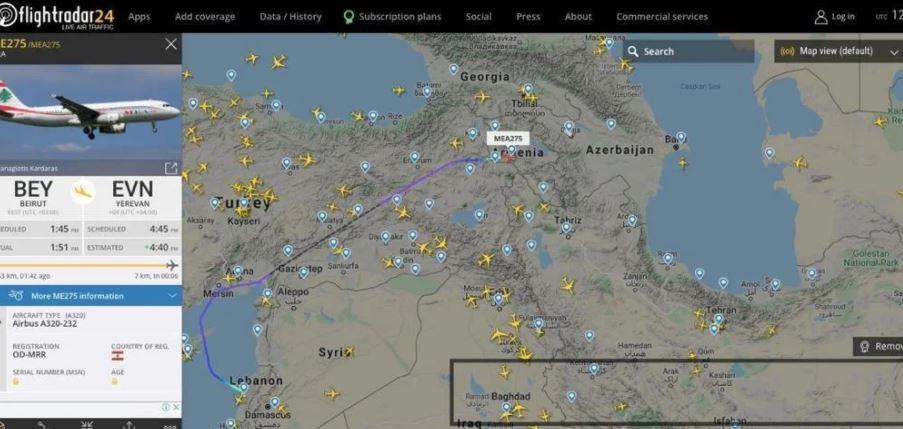 Livanın paytaxtı Beyrutdan Yerevana “Airbus A320” təyyarəsi istiqamət götürüb.