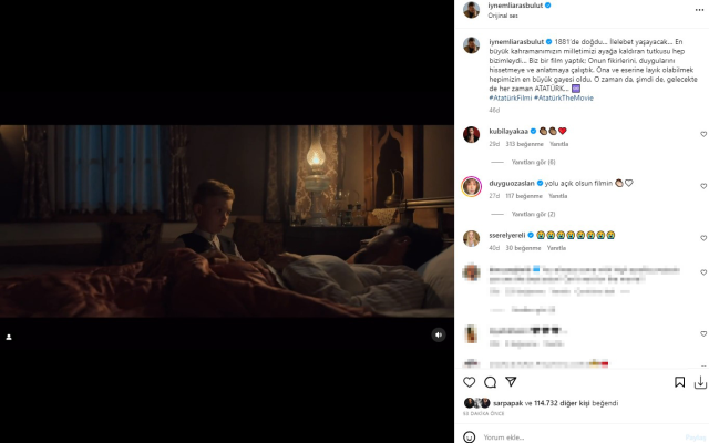 Bu barədə "İnstaqram" hesabında paylaşm edən filmin baş rol ifaçısı - "Atatürk"ü oynayan Aras Bulut İynemli məlumat verib.