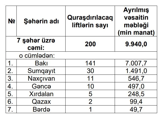 Prezident İlham Əliyev lift təsərrüfatına 10 milyona yaxın pul ayırıb - SİYAHI