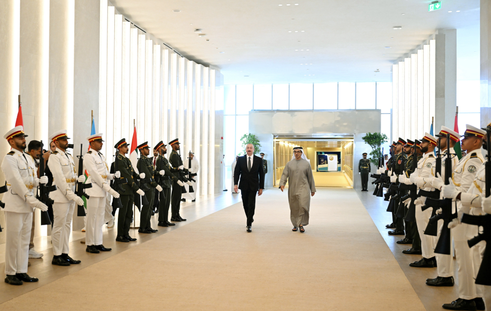 Mia.az xəbər verir ki, Əbu-Dabinin Zayed Beynəlxalq Aeroportunda dövlətimizin başçısının şərəfinə fəxri qarovul dəstəsi düzülmüşdü.