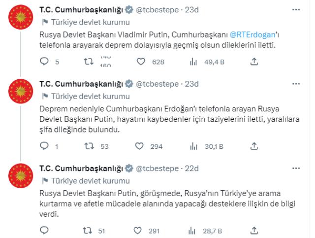 Türkiyə mətbuatı yazır ki, Putin Ərdoğana "arzu etdiyiniz hər dəstəyi anında verməyə hazırıq. zatən gərəkli yardımlar tezlklə göndəriləcək, amma sizin tələbinizə uyğun yardım siyahımız çeşidləndirməyə hazırıq" mesajı da verib.